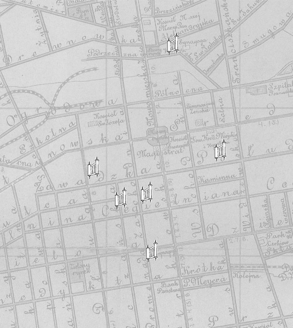 Ohel Jakov - nieistniejąca mała synagoga przy Gdańskiej 18 |